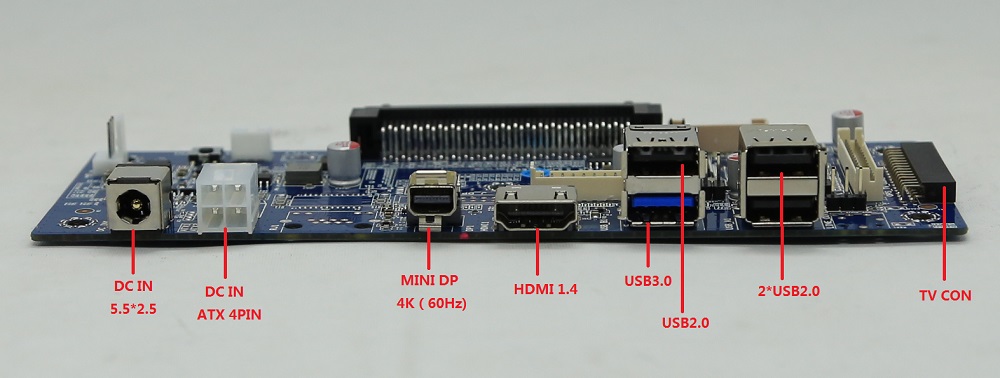 1*POWER開關(guān) 1*VGA 1*HDMI 1.4B 1*Audio out 1*MIC 3*USB 2.0 3*USB 3.0 1*RJ45 2*天線 1*OPS JAE 1*DC IN 1*AUTO POW ON |